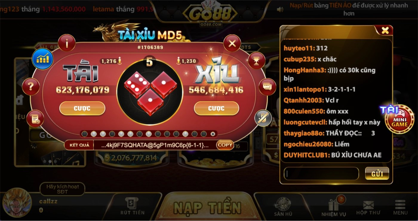 Go88 cũng là một cái tên không thể bỏ qua khi nhắc đến cổng game tài xỉu free. Nơi đây nổi bật với nhiều chế độ chơi đa dạng, từ ku Tài xỉu MD5 cho đến ku Tài xỉu Livestream. Giao diện thân thiện cùng tốc độ tải game nhanh chóng sẽ giúp anh em trải nghiệm không bị gián đoạn. Thêm vào đó, Go88 thường xuyên tổ chức các sự kiện, mini game thú vị, nơi anh em có thể nhận thêm nhiều phần quà hấp dẫn khi tham gia.